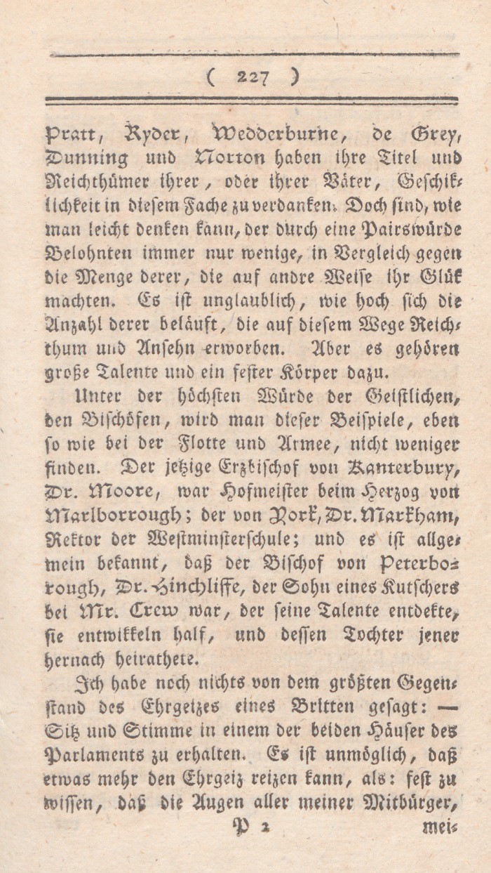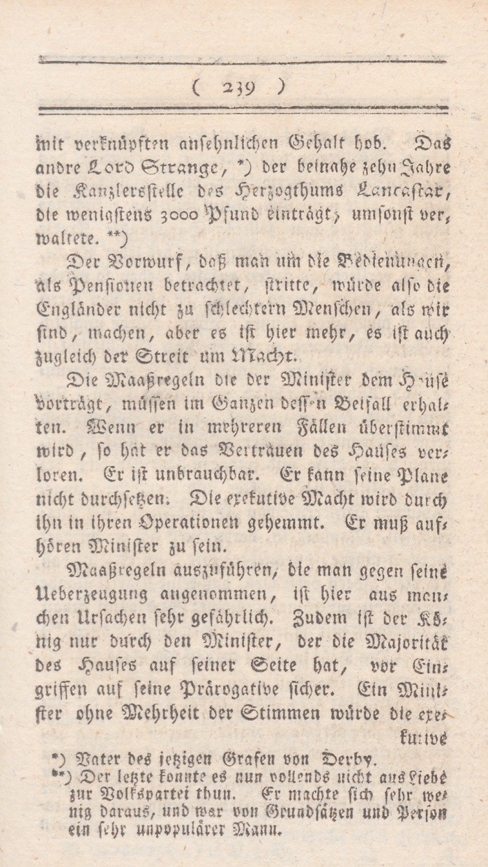 4. Das Oberhaus ist eine Belohnung für auszeichnende Verdienste, und das beste Mittel der Krone, der etwa zu sehr einreißenden Macht desUnterhauses Schranken zu lenken.