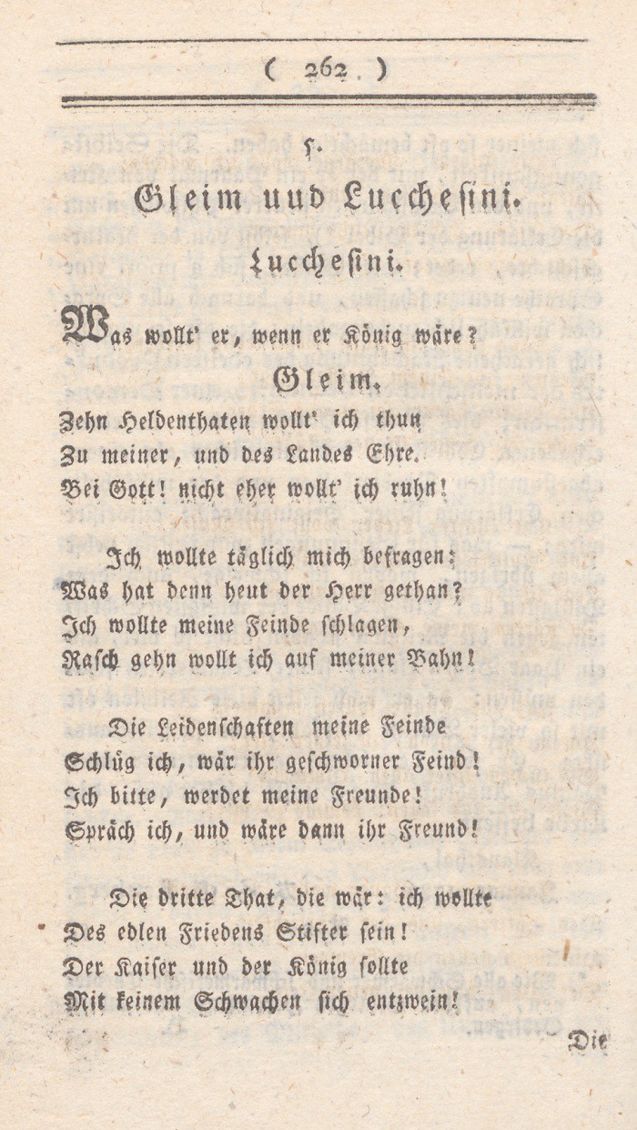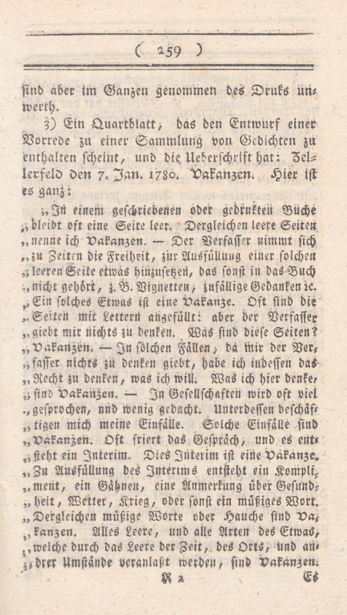 züglich in folgender Rüksicht. Lessing – die denkende Menschheit wird immer seinen Namen mit Ehrfurcht nennen – scheint fast in einigem Betracht zu früh für sein Zeitalter gekommen zu sein. Sensation mußten die mächtigen Schritte, die dieses große Genie in so vielen Fächern that, allemal hervorbringen; aber, daß diese Sensation bei so vielen, und selbst sonst gut denkenden Menschen, bald ängstliche Furcht für Religion und Tugend, bald verfolgender Haß gegen den großen Mann ward, zeigt offenbar, wie ungewohnt und wie unvorbereitet zu dem von ihm angekündigten Lichte man noch war. Sein ungemeines Talent, eine Sache von den verschiedensten Seiten anzusehn; seine reine Liebe zur Wahrheit, ohne Rüksicht auf das etwa dadurch fallende System oder die davon zu erwartenden gefährlichen Folgen; die Thätigkeit, seine Denkkraft an allem zu üben, und Allen zu gleicher heilsamenUebung den freien Weg zu bahnen; seine Ueberzeugung, daß nur im Bestreben, im Anstrengen unserer Kräfte, im Forschen nach Wahrheit, das Wesen, und folglich auch das Glük, unserer Seele beruhe; sein daraus entspringender Eifer, das Recht der eignen Untersuchung in allen Dingen ungestört zu erhalten: alles das hat die wohlthätigsten Folgen für seine Zeitgenossen gehabt; hat gemacht, viele Dinge ihnen jetzt in einem ganz andern Lichte erscheinen, als ehemals, daß ihnen Wahrheit an und
