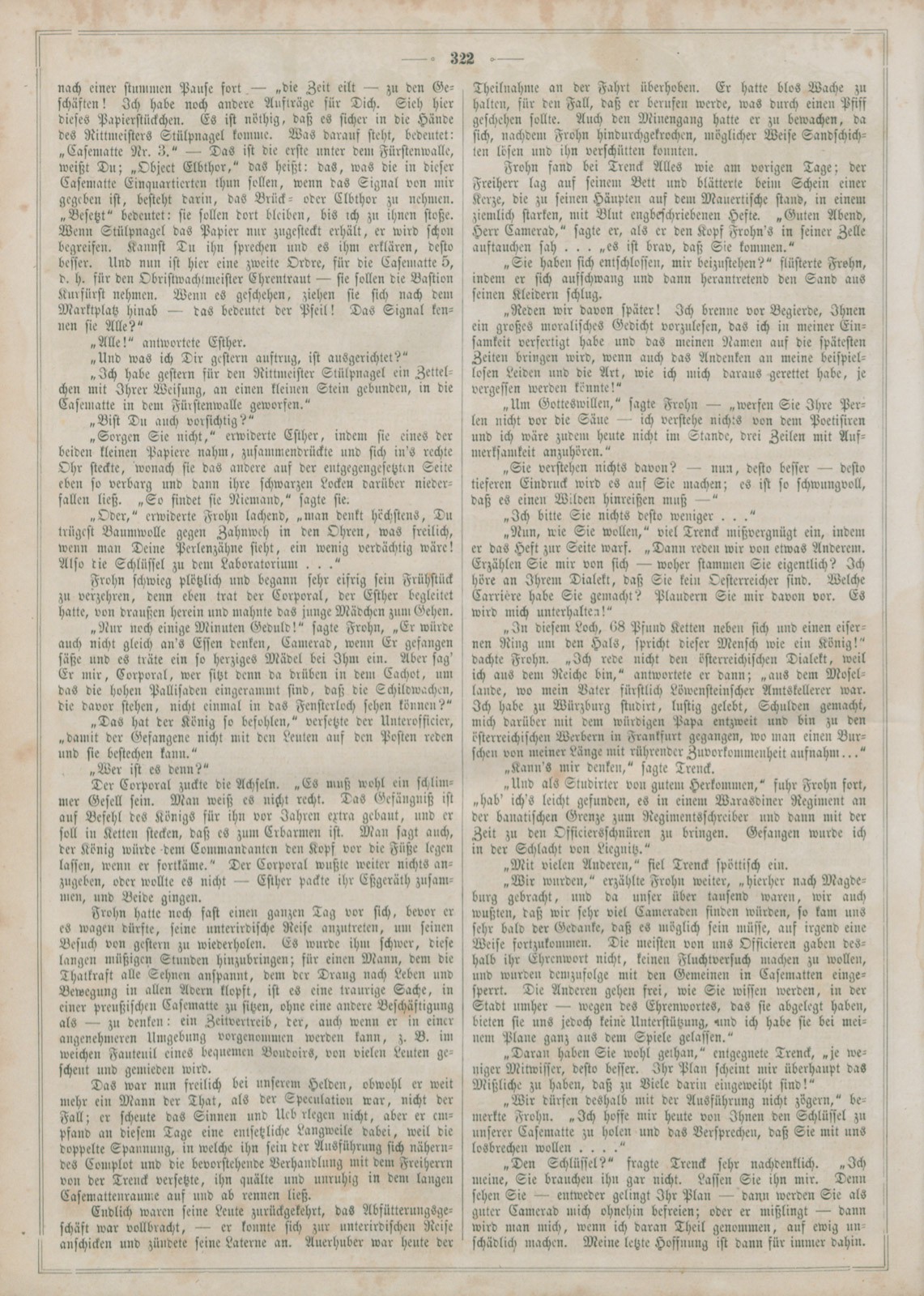„Daran haben Sie wohl gethan,“ entgegnete Trenck, „je weniger Mitwisser, desto bester. Ihr Plan scheint mir überhaupt das Mißliche zu haben, daß zu Viele darin eingeweiht sind!“