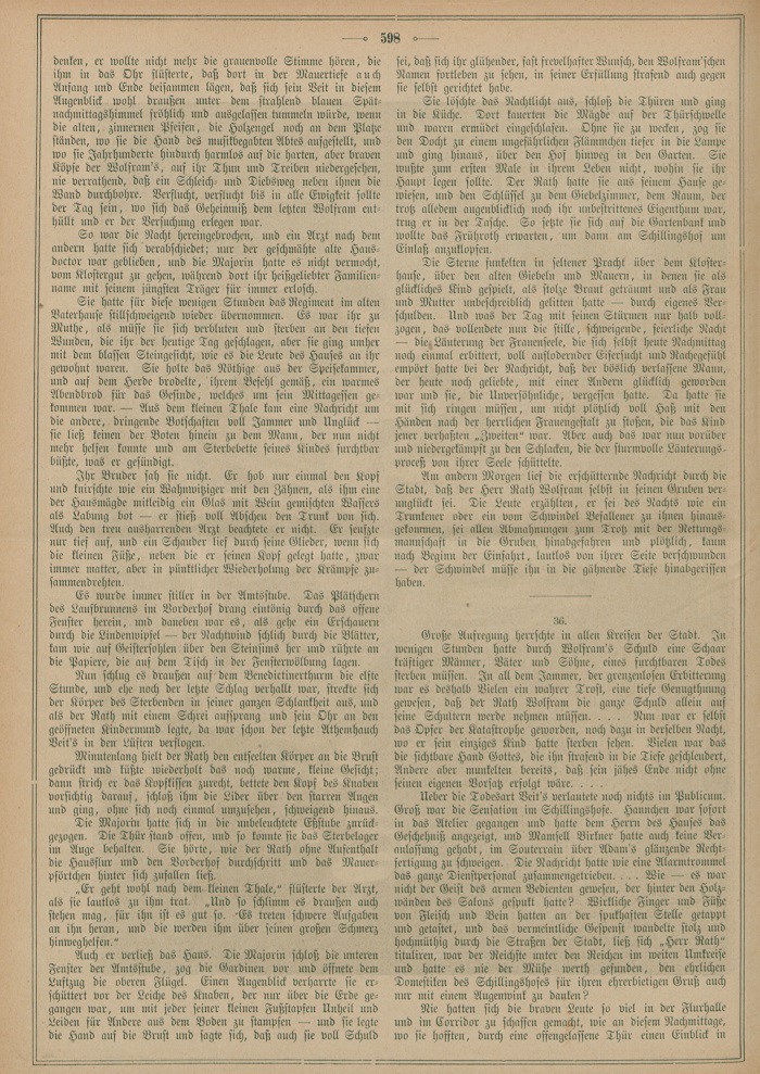 In diesen inneren und äußeren Sturm hinein kam die ärztliche Botschaft vom Klostergute. Das zum Hinablassen in die Tiefe bestimmte Seil, welches der Rath eben herbeischleppte, entfiel seinen Händen; einen Augenblick stand er wie vom Blitz getroffen; dann verließ er seinen Rettungsposten, um nach der Stadt zu eilen.