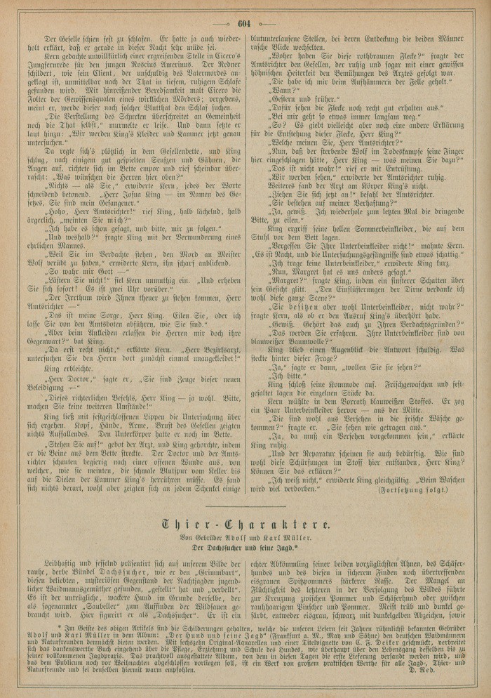 „Woher haben Sie diese rothbraunen Flecke?“ fragte der Amtsrichter den Gesellen, der ruhig und sogar mit einer gewissen höhnischen Heiterkeit den Bemühungen des Arztes gefolgt war.
